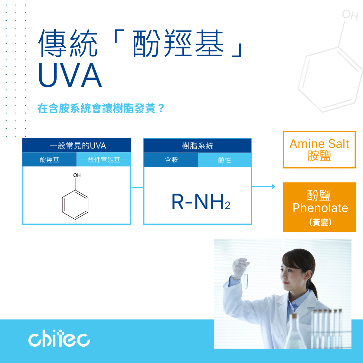 为什么传统「含酚羟基」UVA 在含胺系统中特别容易出问题?